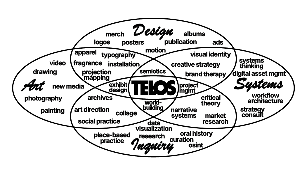 I'm anti-discipline; I make art and design with as many tools as I can get my hands on. Lately I make immersive identity systems, photography, video projection, experimental publishing, fragrance, and creative code—and more. I'm interested in design and art as: